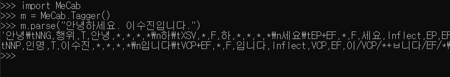 위 방법은 MeCab 자체를 불러오는 방법입니다.