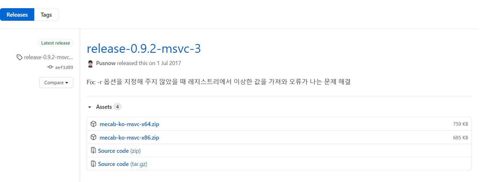 - github.com/Pusnow/mecab-ko-msvc/releases/tag/release-0.9.2-msvc-3