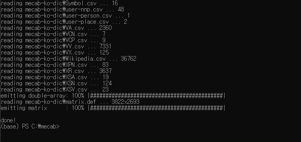 여기까지 하면 Mecab에 필요한 기본 환경 적인 요소는 다 셋팅이 되었습니다.