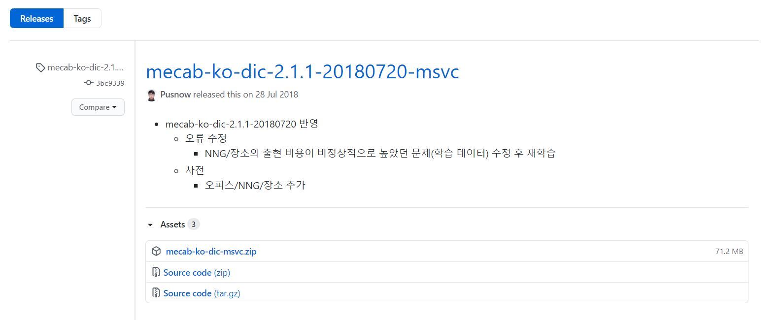 - github.com/Pusnow/mecab-ko-dic-msvc/releases/tag/mecab-ko-dic-2.1.1-20180720-msvc-2