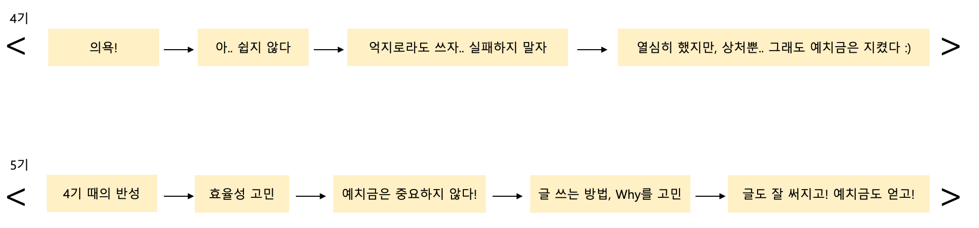 - 4기 때 다짐했던 '글의 성장'을 느끼지 못함