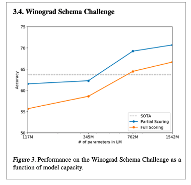• Training and test sets of WebText의 성능은 model size가 커질 수록 증가함