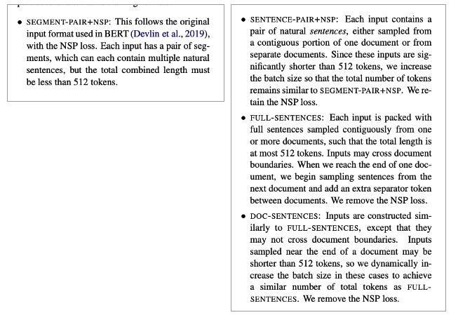 • 최근 연구에서 NSP loss에 대한 의문이 제기되고 있음