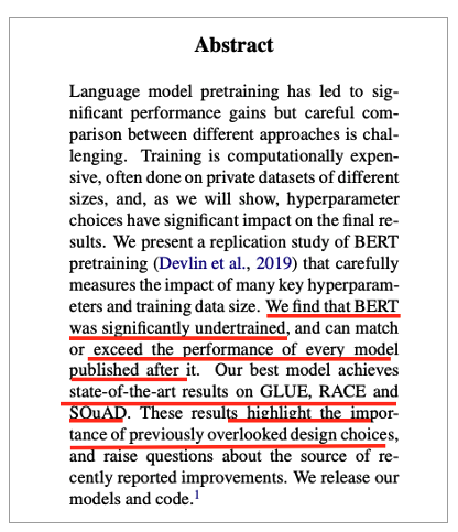 RoBERTa는 위처럼 핵심을 요약할 수 있습니다.