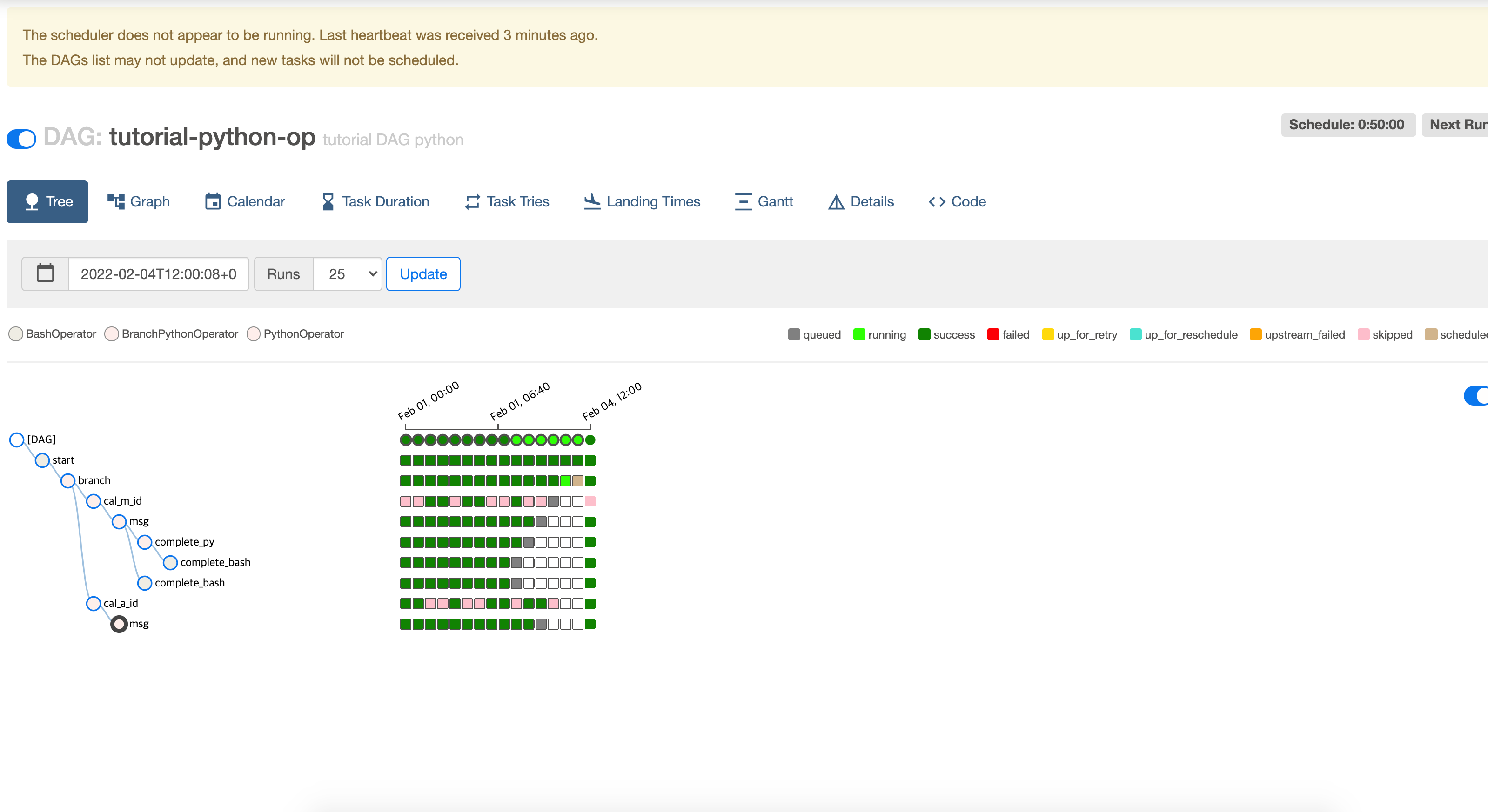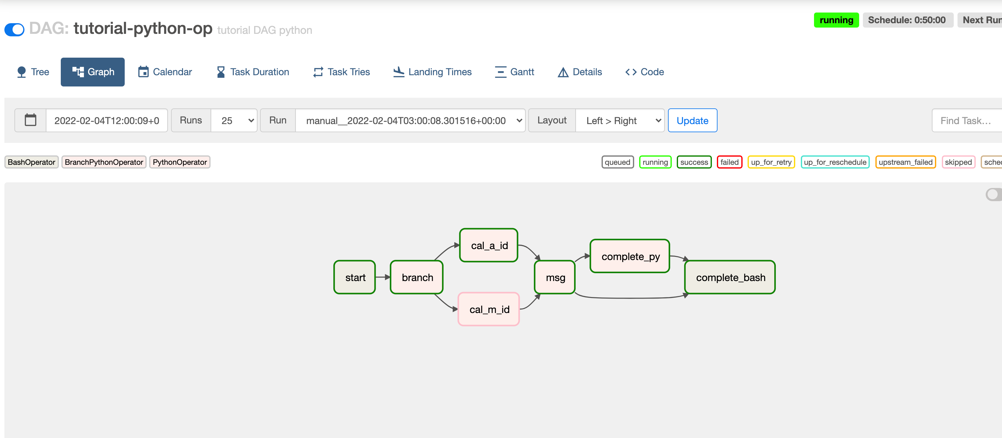 python operator 예제를 확인시키면 branch에 따라 분기가 일어나고 분기에 따라 실행되는 task가 다릅니다.