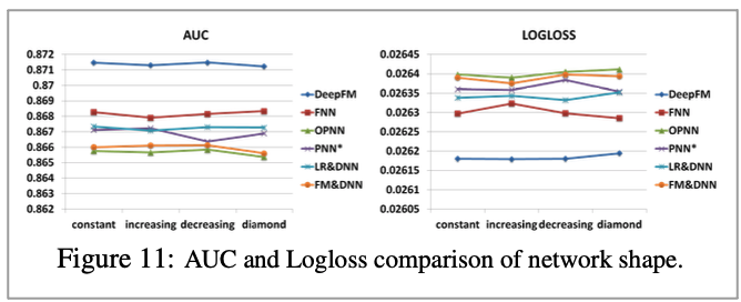 • LR(does not consider feature interaction), FM, FNN, PNN, Wide & Deep, DeepFM