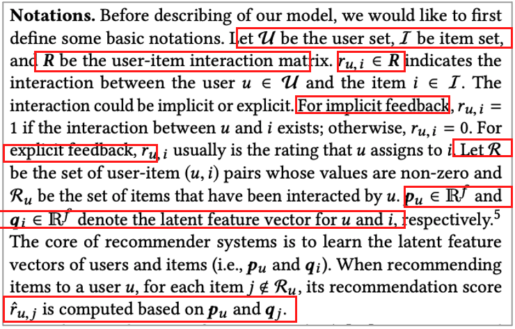 이제 본 논문에서 제안한 추천 시스템 모델을 살펴봅니다. 먼저, 본 논문에서 사용한 기호 notation을 정리합니다.