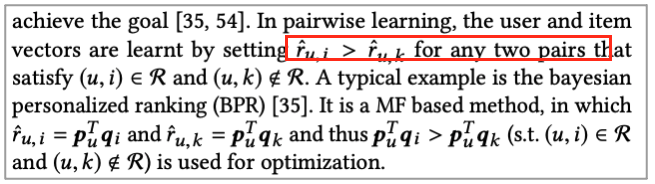 사용자와 아이템의 벡터가 있고 어떤 아이템을 더 선호하는지 학습하는 것
