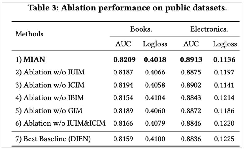 • MIAN이 user historical preference 추출에 sequential behavior가 중요하다는 것을 알 수 있음