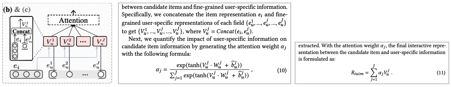 • candidate item과 가장 잘 일치하는 fine grained user specific information을 학습하고 추출할 수 있음