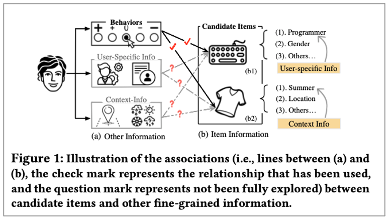추천 시스템 쪽에는 user spedific한 정보와 context 정보가 많이 있다고 본 논문에서는 이야기 하고 있습니다. 이러한 Fine-grained information은 사용자의 현재 상태를 유추할 수 있는 단서를 제공하고 개인화 성능을 향상시킬 수 있습니다.