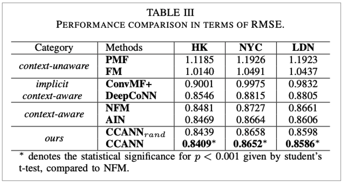 • Context를 고려하지 않은 traditional model(PMF, FM)보다 좋은 성능