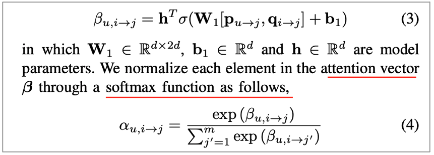 • Attention mechanism을 활용해 user contextual preference와 item context aware aspect 사이의 degree of matching을 모델링