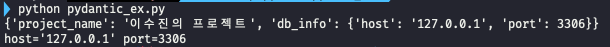 위 코드는 앞서 배운 Pydantic의 BaseModel과 BaseSetting까지 전부 활용하였습니다. 또한, port와 host에 대한 validator를 추가해서 적절한 값인지 확인하는 간단한 로직을 추가하였습니다.