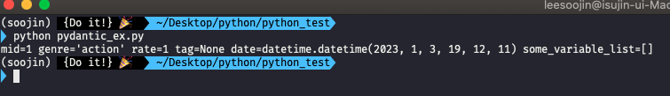 하지만, 이번 예제에서는 FastAPI를 제외하고 Pydantic만 활용해보겠습니다.