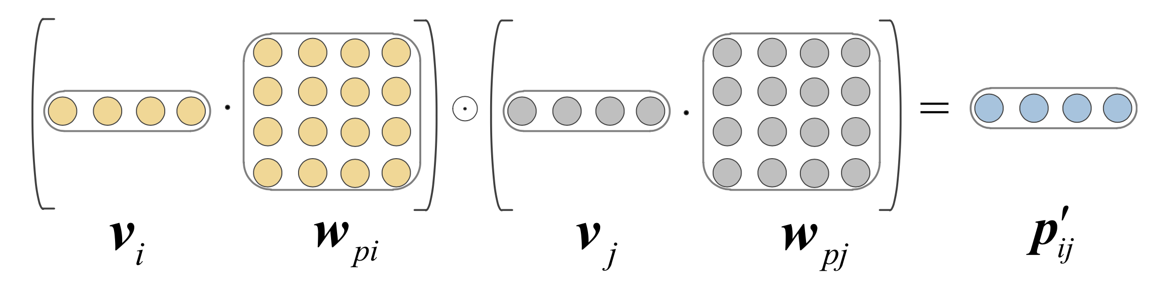 따라서, 본 논문의 저자들은 더 세분화 된 bilinear function을 도입해 전체 매핑 관계를 취할 수 있고 inner product와 hadamard product의 장점을 가지고옵니다. 해당 인코더는 아래 사진과 같은 구조를 가지고 있습니다.