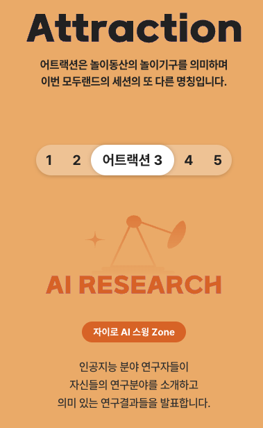 저는 그 중 어트랙션3의 AI Research쪽에서 발표를 진행했었습니다.