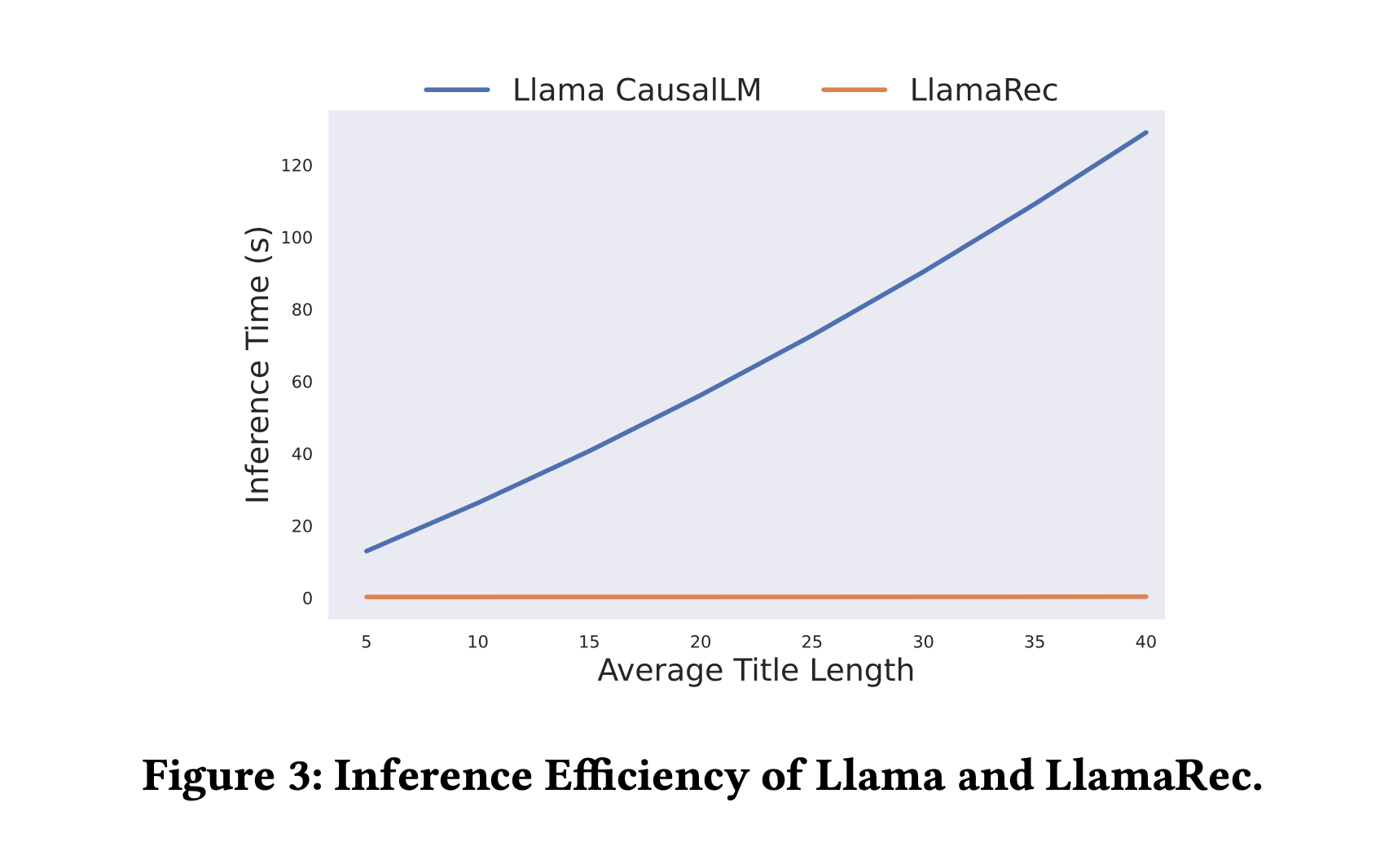 마지막으로 저자들은 LlamaRec의 inference 효율성을 평가합니다. Figure 3는 LlamaRec와 Llama CausalLM의 비교를 진행한 것입니다. 여기서 CausalLM은 Llama 2 모델을 사용한 것을 뜻합니다.