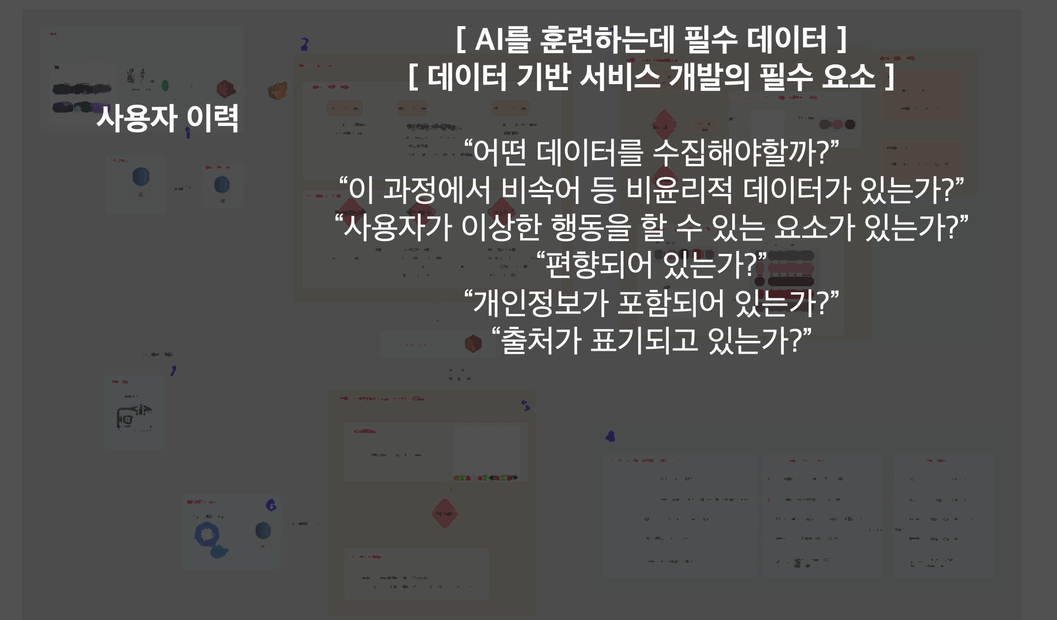이때, 가장 중요하게 생각한 것이 바로 사용자 이력 부분입니다. 이 사용자 이력에서 윤리적인 이슈가 발생하지 않도록 데이터 로깅 설계를 어떻게 할 것인가를 많이 고민했었죠.