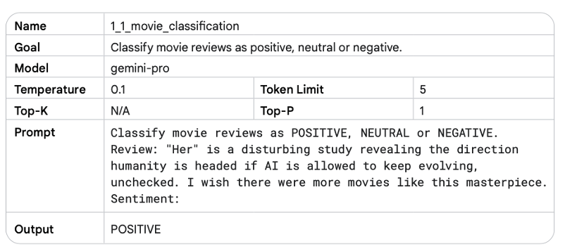 영화 리뷰를 긍정적, 중립적 또는 부정적으로 분류하라는 프롬프트인데요. 지시어 다음에 바로 리뷰를 제공해주고 감정(Sentiment)를 표기하는 방식으로 매우 간단하게 동작되는 프롬프트 입니다.
