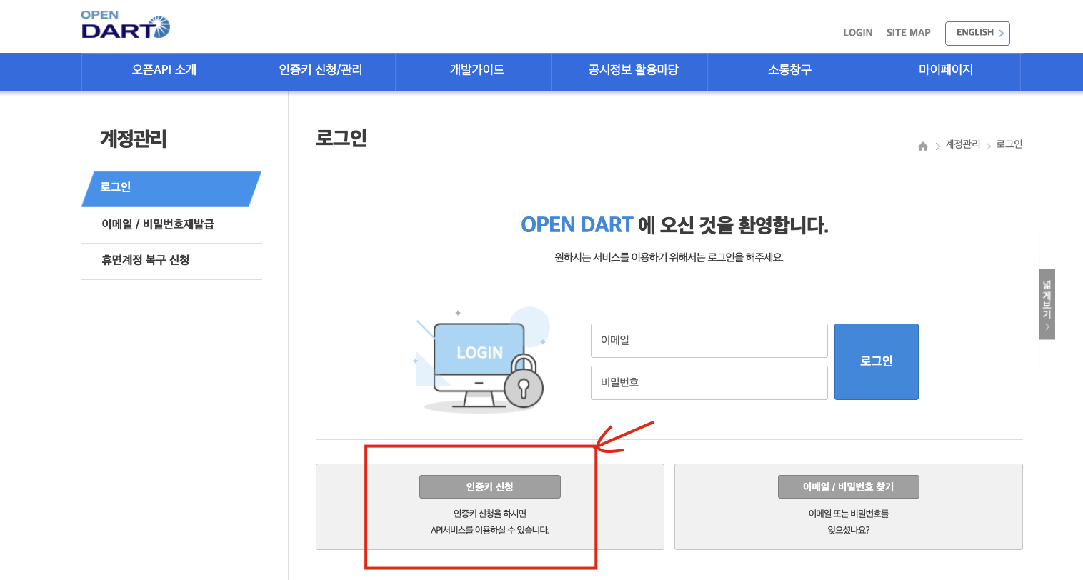 OPEN DART 이용하기 - 회원가입 및 API Key 발급 받기