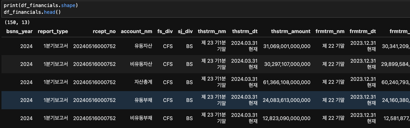 Open DART API 키를 넣고, 실행시키면 위와 같이 수집이 정상적으로 되는 것을 확인할 수 있습니다.