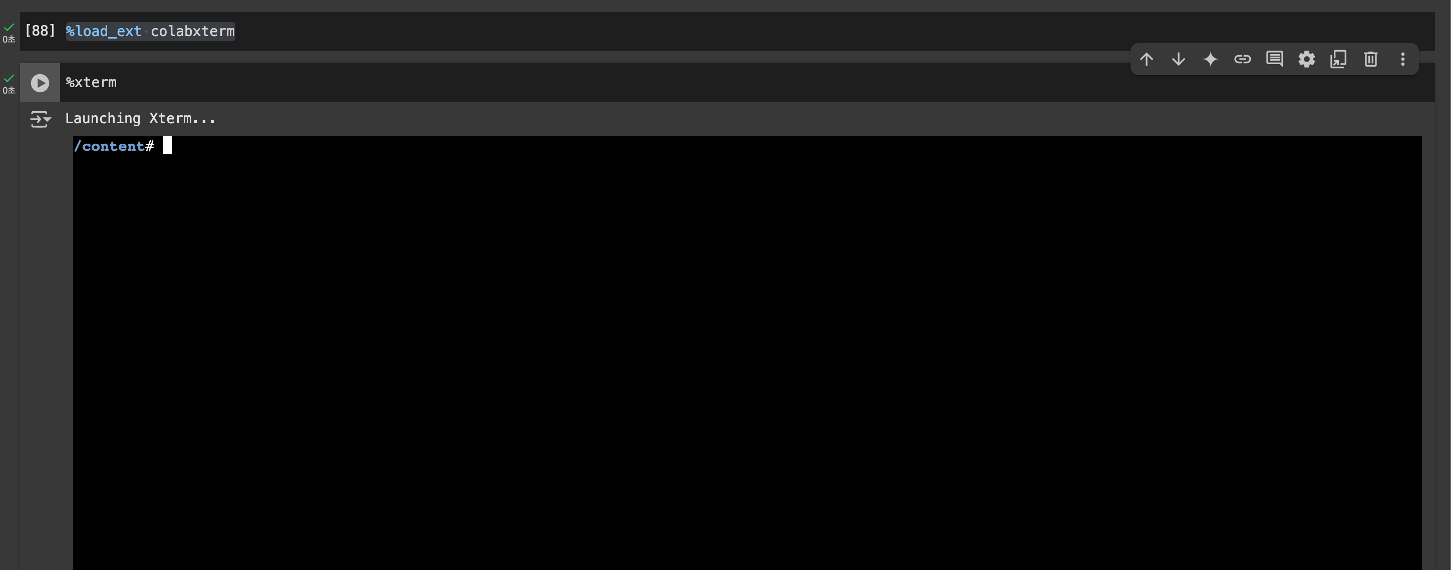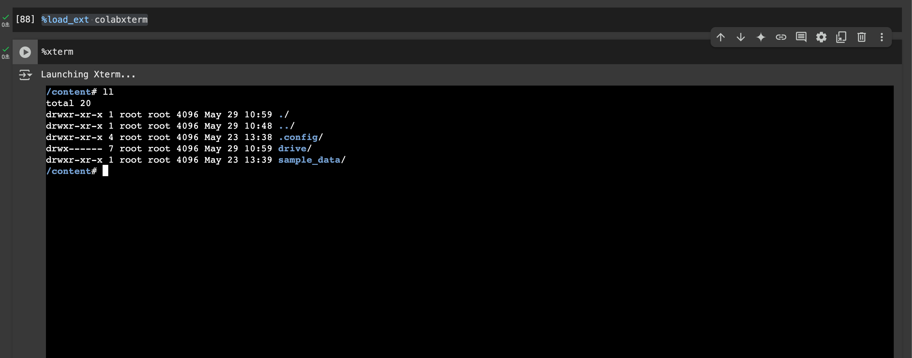 여기서부터는 xterm을 이용하셔도 되고, 아니면 colab 셀에 "! 명령어"구로조 실행하셔도 됩니다.
