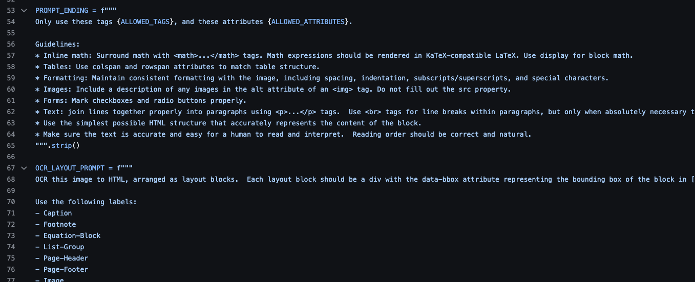 OCR 레이아웃 프롬프트에서 모델에게 제공하는 주요 가이드라인은 다음과 같습니다.