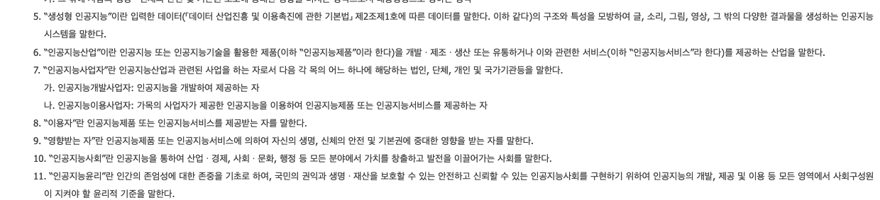 | 1. AI를 개발하거나, AI를 활용한 제품/서비스를 제공하나요? | → 2번으로 | → 적용 대상 아님 |