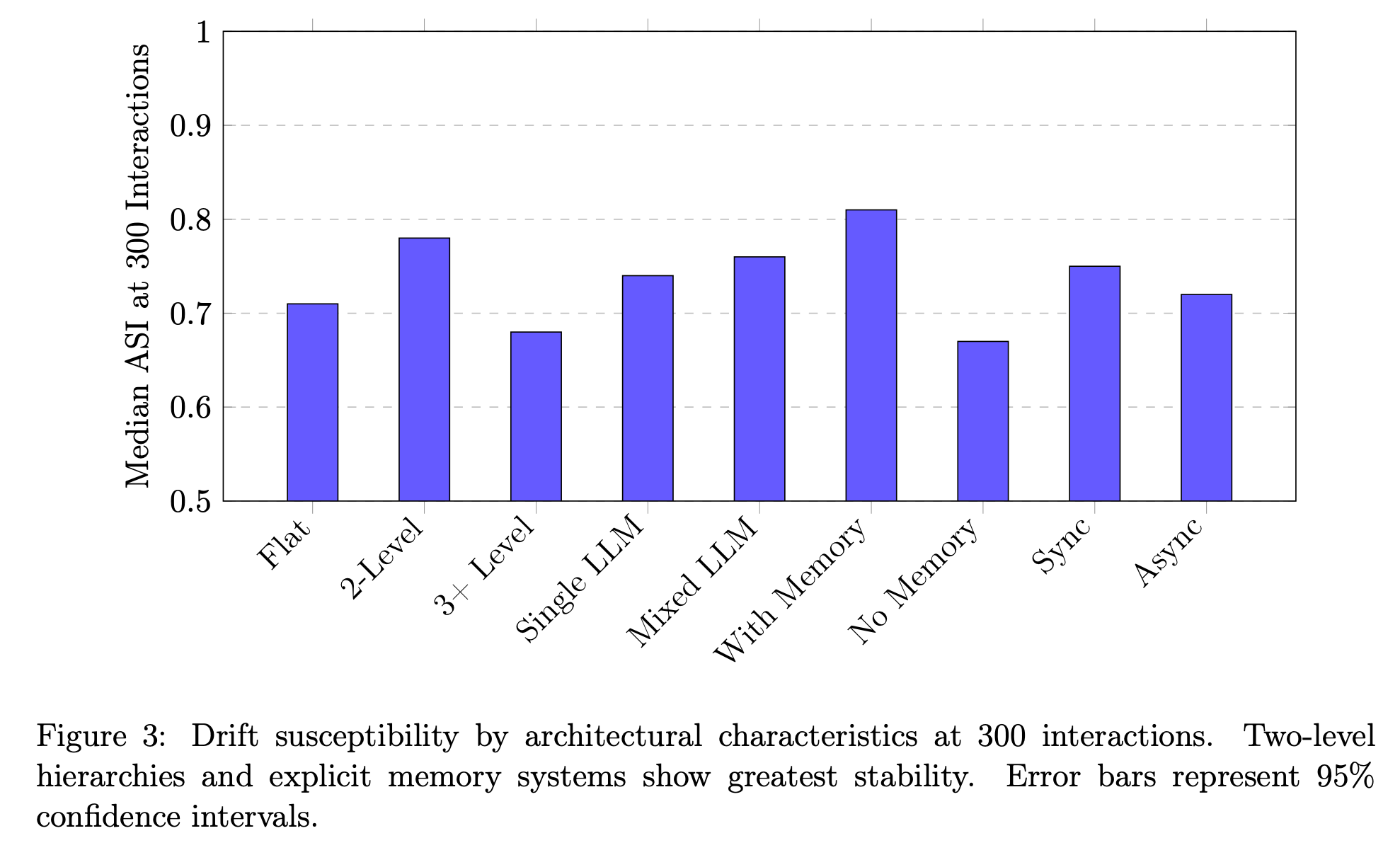 2) 메모리 시스템 (Memory Systems): 명시적인 장기 메모리(벡터 데이터베이스, 구조화된 로그)를 통합한 워크플로우는 대화 기록에만 의존하는 워크플로우보다 21% 높은 ASI 유지율을 보였습니다. 이는 외부 메모리가 점진적 드리프트에 저항하는 "행동 앵커(behavioral anchor)"를 제공함을 시사합니다.